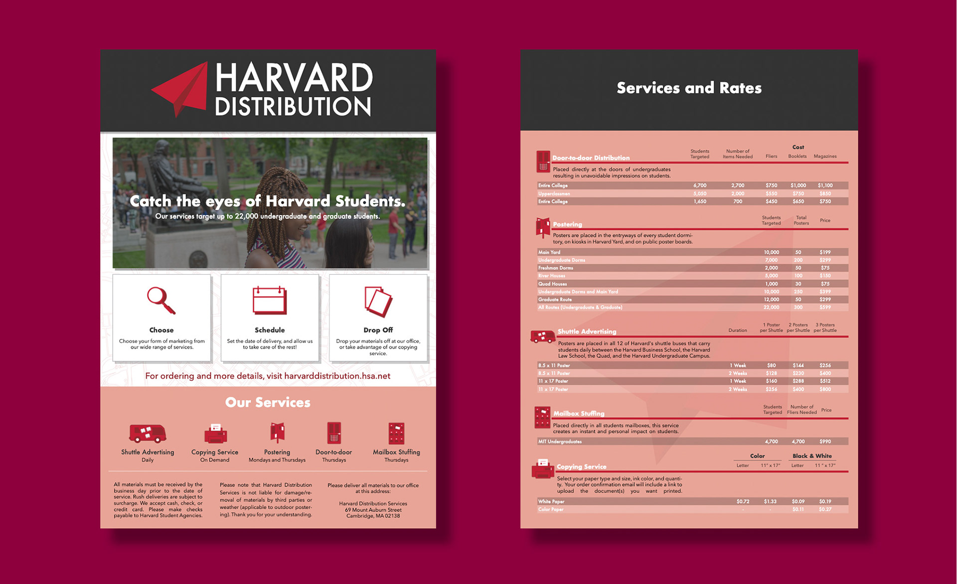 I created banners and pricing brochures for a variety of companies of Harvard Student Agencies.